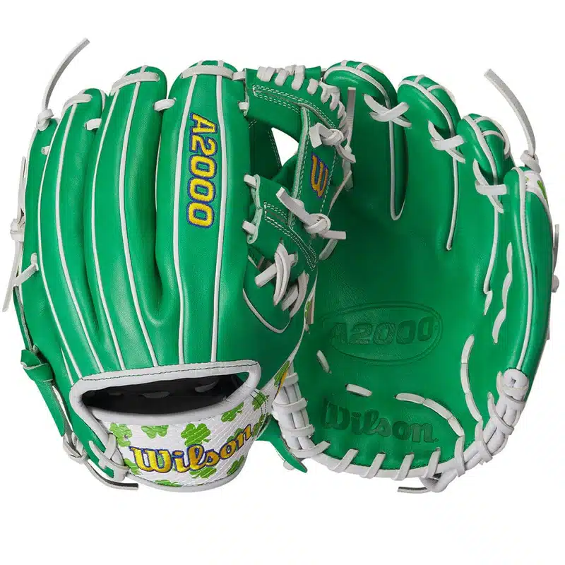 Make your luck on the infield with the 2024 MDA A2000 1786, an 11.5” infield glove featuring Kelly Green Pro Stock® leather, the MDA logo embroidered on the pinky and White SuperSnakeSkin™ decorated with shamrocks. The MDA A2000 1786 baseball glove’s March debut coincides with the Muscular Dystrophy Association’s annual Shamrocks Retail Campaign to help empower people to live longer, more independent lives. The glove’s shallow pocket design and H-Web construction makes it easy for infielders to change the game at second base, third base or shortstop.