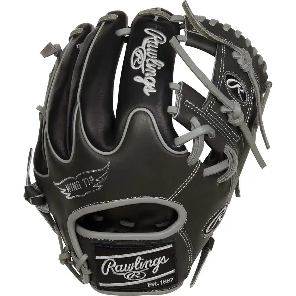 You’ll be stalking the infield with a purpose once you put on this dark-shadow Rawlings Heart of the Hide 11.75-inch Infield Glove! Crafted with world-famous, ultra-premium steerhide leather, this glove holds its shape perfectly over time and stands up to the game’s highest level of performance. That’s why MLB pros have been trusting Heart of the Hide for more than 50 years! In addition, this glove’s Wing-Tip design adds a distinctive flair and keeps the glove’s welting off your fingers, making it even more comfortable. Plus, Rawlings’ Dark Shadow leather pairs perfectly with the gray and silver accents of the glove, creating a subtle touch of intensity that matches your game. Get your 11.75-inch Heart of the Hide infield glove now!