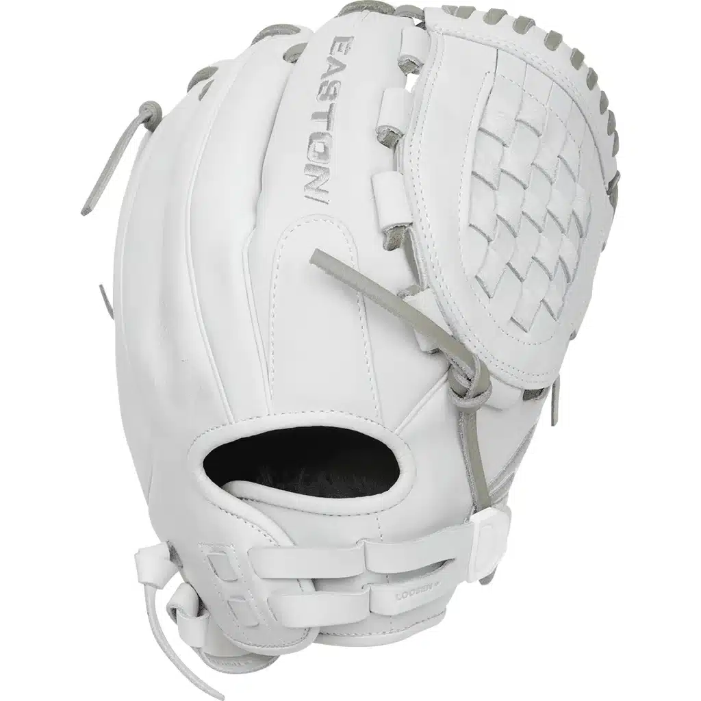 Hit the diamond like a pro with this Easton Professional Collection 12.5-inch pitcher’s fastpitch glove! Inspired by Easton’s stellar team of pro softball stars, these gloves have all the features that elite players look for. Crafted with a reformulated premium steerhide leather, the Professional Collection holds its shape perfectly and stands up to the game’s toughest tests. On top of that, Easton’s Quantum Closure System ensures a comfortable and secure fit, no matter your hand size, so you can go after any ball with confidence. Crafted from reformulated premium reserve USA steerhide, this glove ensures lasting durability and a luxurious feel. The innovative quantum closure system, combined with an adjustable open back design, guarantees a secure and customizable fit, providing ultimate comfort and control on the field. When you add in the eye-catching white-on-white design, you’ve got a glove that any elite fastpitch player would look for. Get your Easton Professional Collection 12.5-inch pitcher’s glove today!