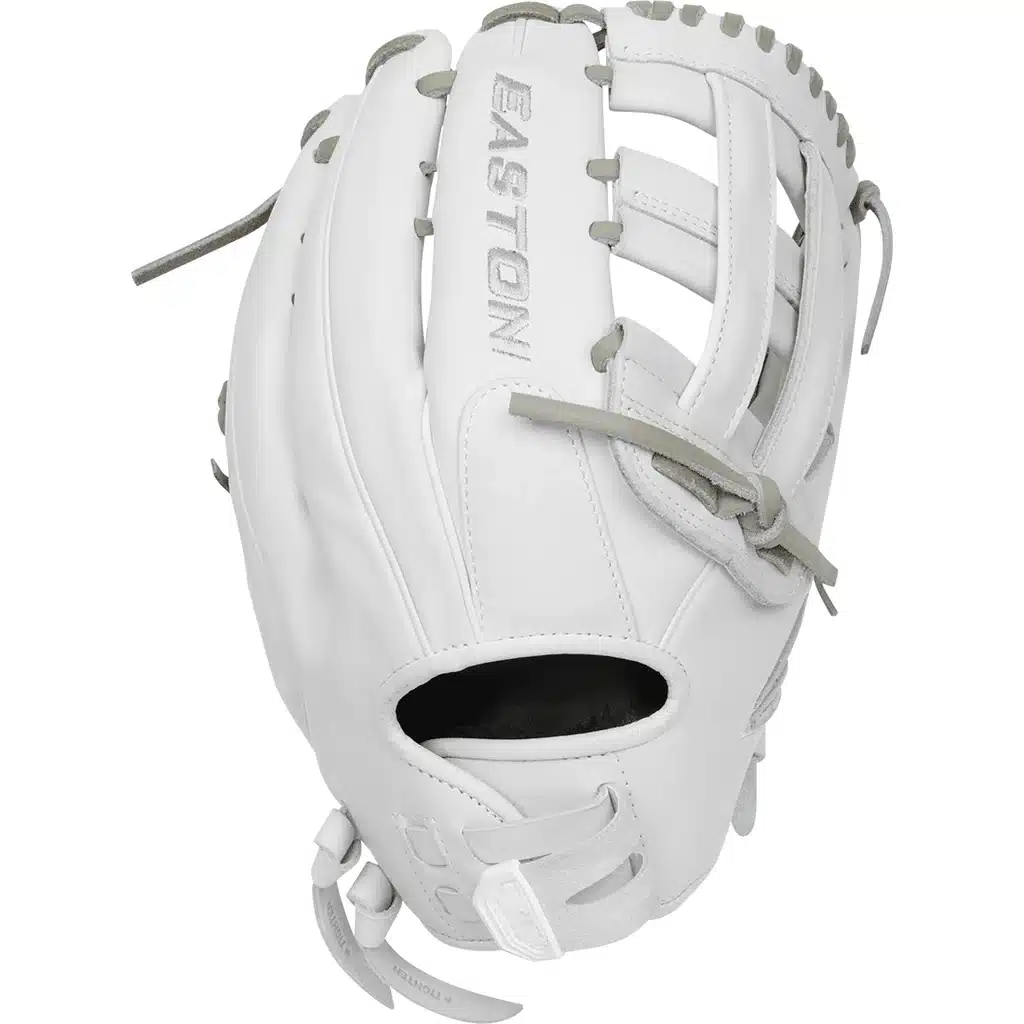 Hit the diamond like a pro with this Easton Professional Collection 13-inch fastpitch outfield glove! Inspired by Easton’s stellar team of pro softball stars, these gloves have all the features that elite players look for. Crafted with a reformulated premium steerhide leather, the Professional Collection holds its shape perfectly and stands up to the game’s toughest tests. This glove also features a large H-web that has the perfect amount of give needed to snag line drives and fly balls. On top of that, Easton’s Quantum Closure System ensures a comfortable and secure fit, no matter your hand size, so you can go after any ball with confidence. When you add in the eye-catching white-on-white design, you’ve got a glove that any elite fastpitch player would look for. Get your Easton Professional Collection 13-inch outfield glove today!