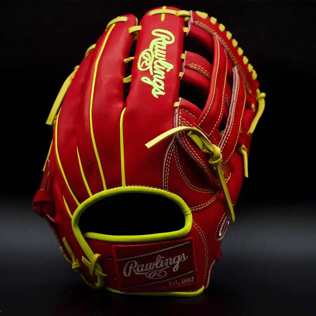 The PRORA13S Scarlet Baseball Glove is constructed using Rawlings’ renowned Heart of the Hide leather, known for its durability, flexibility, and excellent performance. This high-quality leather ensures that the glove maintains its shape and withstands the rigors of the game, even after extensive use.