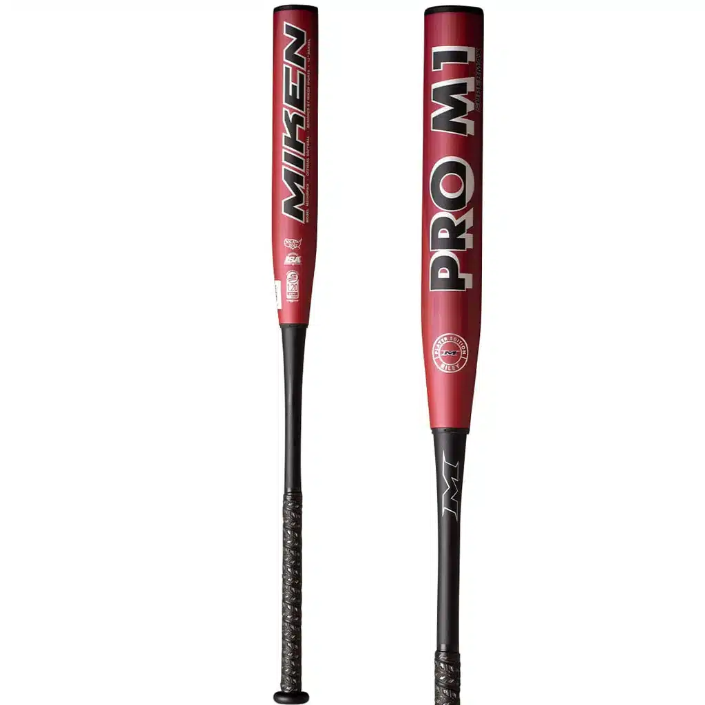 The 2024 Miken PRO M1 12″ USSSA Slowpitch Softball Bat features the standard 2 1/4-inch barrel diameter, 12-inch barrel length, SuperMax End Load (1 oz), and is legal for play in all USSSA, NSA, and ISA sanctioned slowpitch softball leagues and tournaments.