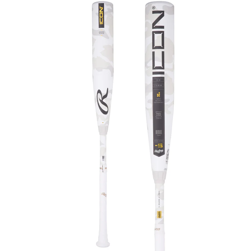 Lastly, Rawlings has upgraded the look of this iconic bat to a stunning white camo pattern, highlighted by several classic black and gold accents that will surely be the main attraction on the diamond. Claim the balance of power with the 2025 Rawlings Icon USSSA bat. Get yours today while you still can!